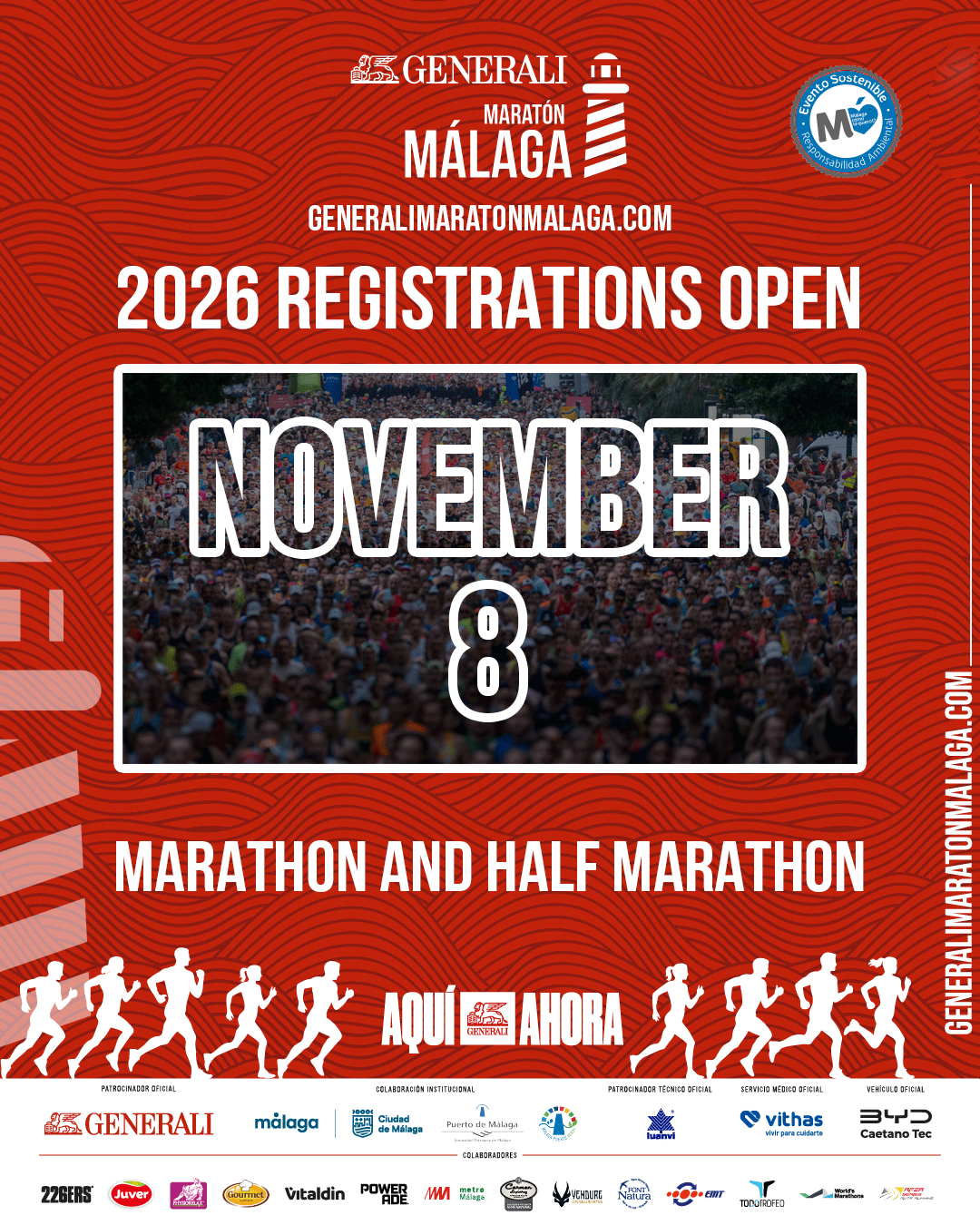 Contact EN Español English SeguirSeguirSeguir Contact EN Español English Registrations My registration Parallel Activities Brunch Run Kids race You Rock Málaga! The Race Broadcasters Regulations Marathon Regulations Half Marathon Runners’ information Pacemakers Hydratation stations Runners’ fair Official hotels Road Official App Photo contest 2024 Edition 2024 Results 2024 Photos FAQS NOVEMBER 8, 2026 Registrations 2025 Photos 2025 Results New roads: faster, flatter and with fewer curves 42K Road 21K Road PARALLEL ACTIVITIES Brunch Run registrations Kids race registrations Information for runners General information Runners' fair Runners' guide Title sponsor Institutional collaboration Official technical sponsor Official medical service Official vehicle Partners Follow us on social media! SeguirSeguirSeguir Download the official App!